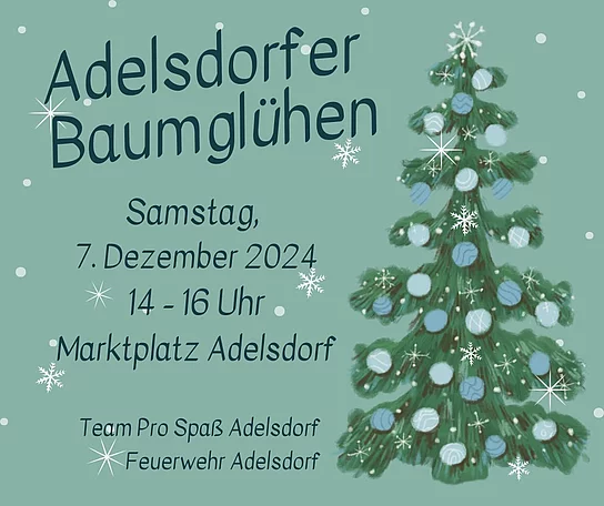 am Samstag, den 07.12.2024 von 14:00 bis 16:00 Uhr schmücken wir gemeinsam mit der Adelsdorfer Feuerwehr unseren Weihnachtsbaum am Marktplatz.