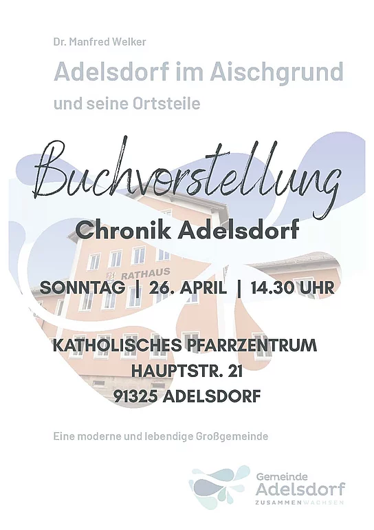 Wir laden Sie herzlich ein, die Vorstellung des Buches gemeinsam mit uns zu feiern. Tauchen Sie ein in die Geschichte und Geschichten unserer Heimatgemeinde Adelsdorf.