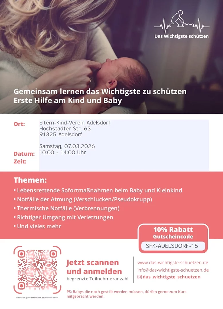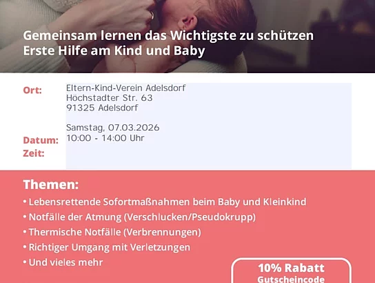 Lerne gemeinsam mit anderen Eltern Erste Hilfe am Baby & Kind – praxisnah & verständlich.