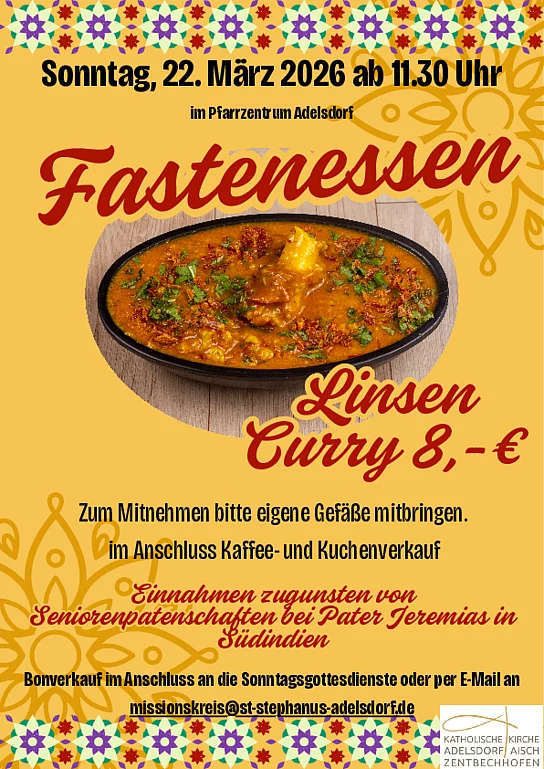 Sonntag, 22.März 2026 ab 11.30 Uhr im Pfarrzentrum Adelsdorf.