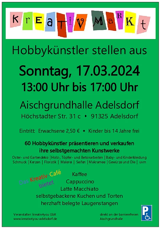 Informationen telefonisch unter 0176/34371324 (ab 18:00 Uhr) oder per Mail an kreativ-adelsdorf(at)gmx(dot)de.