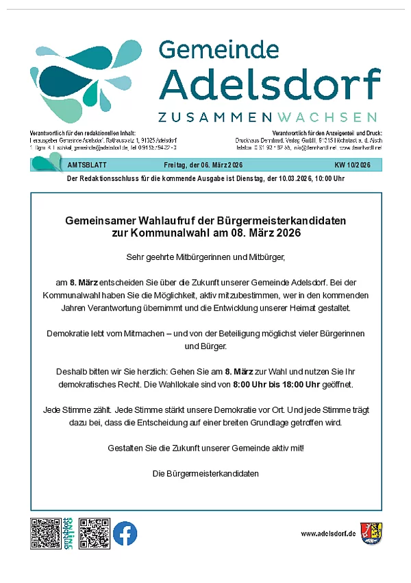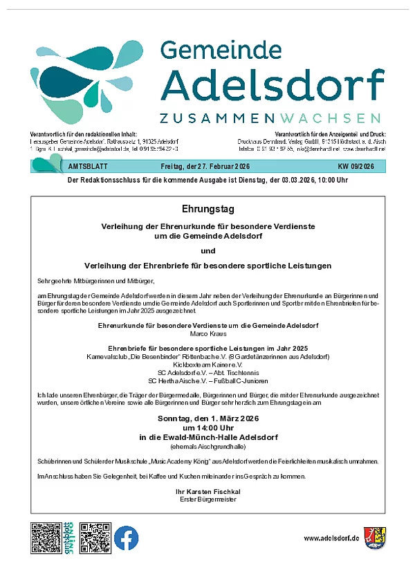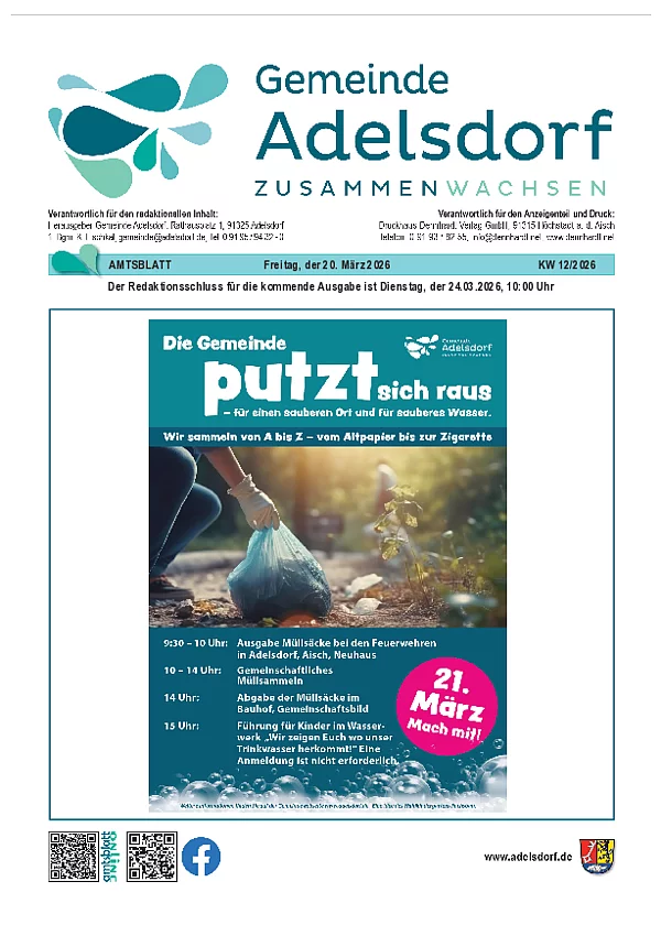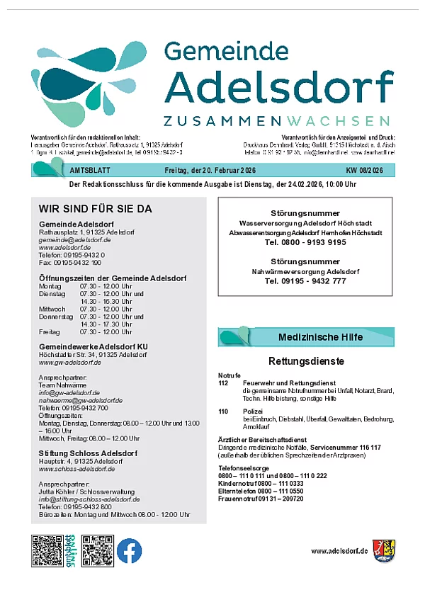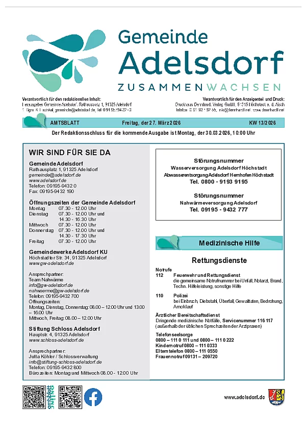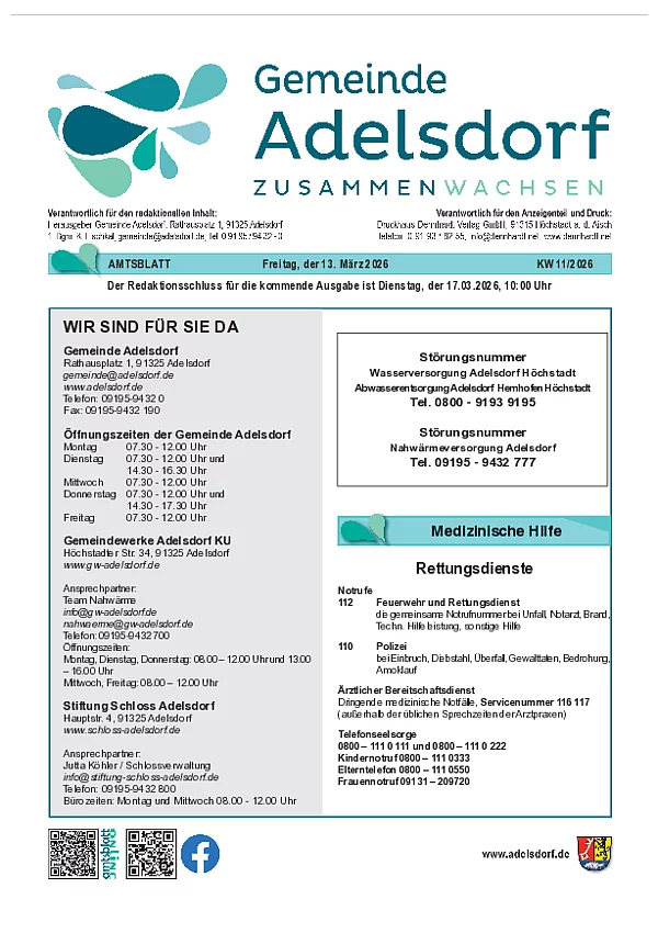Im Folgenden finden Sie das Amtsblatt der Gemeinde Adelsdorf. Die einzelnen Ausgaben stehen Ihnen zum Download bereit.
