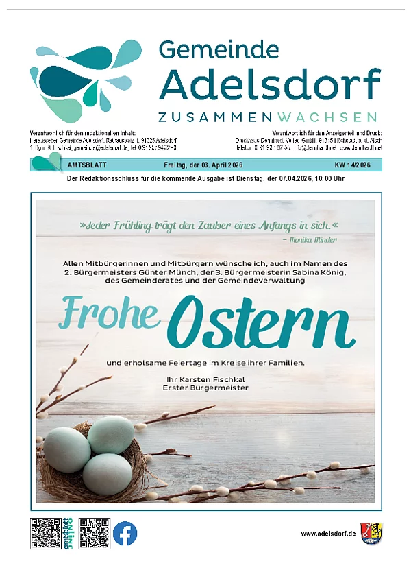Im Folgenden finden Sie das Amtsblatt der Gemeinde Adelsdorf. Die einzelnen Ausgaben stehen Ihnen zum Download bereit.